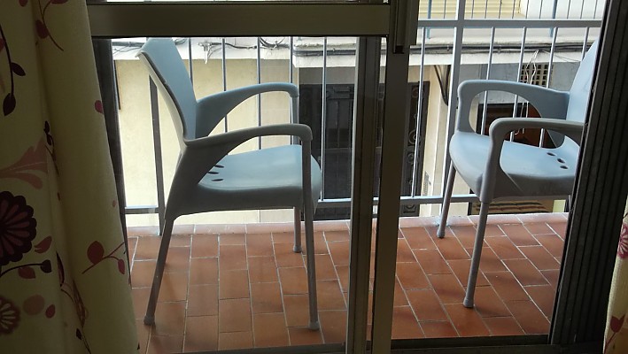 Tanto el salón como el dormitorio principal tienen terrazas a la calle. El apartamento está situado en una primera planta sin ascensor.